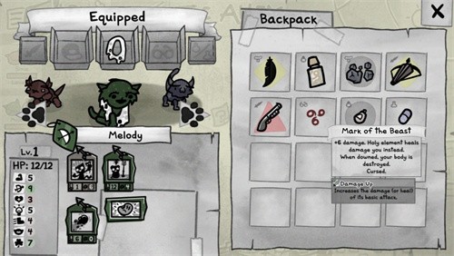 4、Roguelike冒险循环:每局探险均为随机生成的地图与敌人配置。猫咪若在冒险中受伤或获得新特性,将直接影响后续培育方向,形成独特的成长循环。