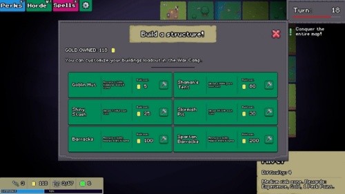 2、建筑运营与军队组建:在探索中占领的空格上,可以建造多种建筑,如兵营(招募新单位)、金矿(提供每回合金币)、训练所(提升单位属性)等。通过合理布局建筑,可持续地获得资源并扩充你的哥布林大军,军队构成将直接影响后续战斗。