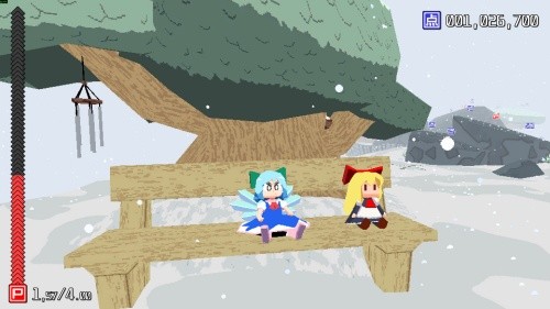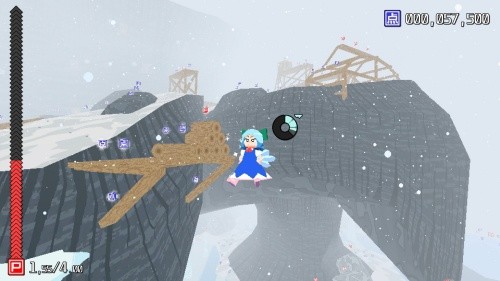 1、探索收集与力量成长:核心玩法是在开放式的冰湖场景中自由探索,寻找并收集发光的力量道具。每收集一定数量的道具,琪露诺的力量等级就会提升,这是推动游戏进程、解锁新区域和能力的关键。