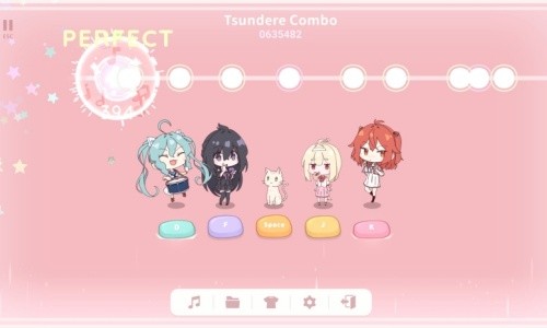 3、高度自由的个性化定制:玩家可以自由更换角色的服装造型,调整Perfect判定时的特效样式,甚至手动设定节拍器BPM,打造完全符合个人审美和习惯的演奏环境。