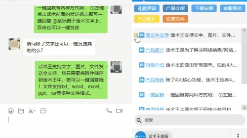 1、话术王是一款致力于优化线上沟通流程的效率工具,核心功能是帮助用户快速调用和发送预设的标准化话术、图片及文件,从而大幅减少重复性输入工作,提升响应速度与专业度。