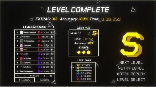 4、总而言之,这是一款为硬核动作游戏爱好者、速通玩家、以及所有追求独特游戏体验的玩家准备的必玩之作。它可能会让你摔鼠标、骂街,但一旦你尝到那种凭借一己之力驾驭物理、征服赛道的滋味,你将会彻底沉迷于这个由几何体构成的、速度与精准的殿堂。