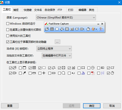 设置对话框的捕获选项卡提供了在Windows启动时启动FastStone的选项,自动最小化Windows系统托盘是最方便和最不干扰的。