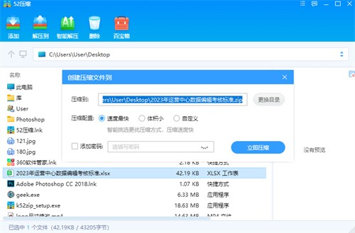 1、压缩文件:选择需要压缩的文件或文件目录,共有压缩最快,文件最小两种压缩模式选择。