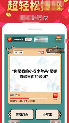 1、本作是一款以知识问答为核心玩法的休闲益智游戏,玩家通过回答系统给出的选择题来闯关,答对题目即可获得积分与红包奖励。