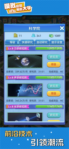 3、玩家在模拟经营我的大学游戏中能够轻松经营一座大学,目标就是让更多的学生进入自己的大学中。