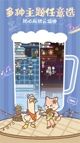 3.游戏中提供动物角色让玩家挑选,玩家可以挑选自己喜欢的动物形象来成为酒吧老板,并努力完成任务经营酒吧。