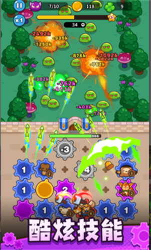 2、游戏背景设定在魔幻世界,森林结界破裂后魔物入侵,小动物们觉醒组建齿轮卫队保卫家园。