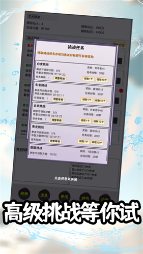 1、充分了解所有角色的属性和技能,及时更改战斗方案,制定更完美的挑战计划;