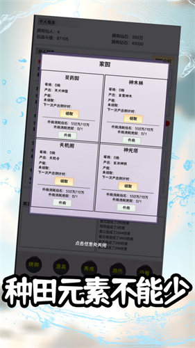 玩家可以通过多种方式提升仙人的实力,包括但不限于升级、渡劫、合成新仙人等,使得仙人的成长路径多样化且充满挑战。