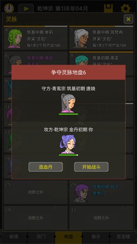 随机资质与性格的弟子入学,可定制化培养方向(炼丹/炼器/阵法/战斗),触发羁绊组合技。