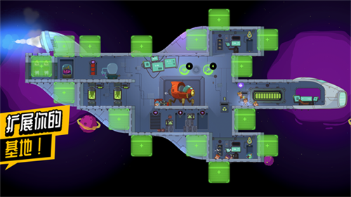 2、收集资源来不断扩展你的飞船,逐渐完善飞船上的各种设施,让你能够在外太空一直旅行下去。