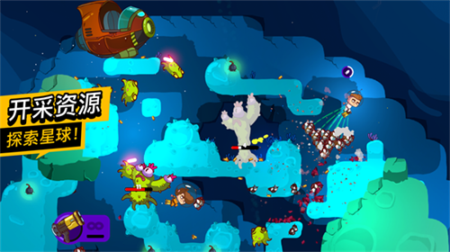 1、前往不同的星球进行探索,去开采丰富的矿石和食物资源,并与外星生物展开激烈的战斗。