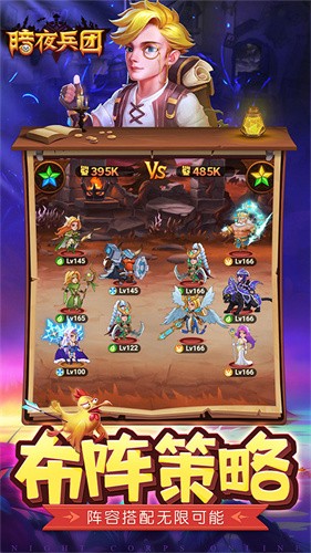 3、自由养成 随意搭配,英雄召唤,任性养成!可爱萝莉,霸气御姐,精英正太,光明与黑暗,打造专属高颜值高战力神团。