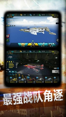 3、丰富的战斗机选择:游戏提供了10款不同的精美战斗机,每款都有独特的外观和性能特点。玩家还可以通过收集数十种零部件自由改装战机,打造出属于自己的最强战斗机。
