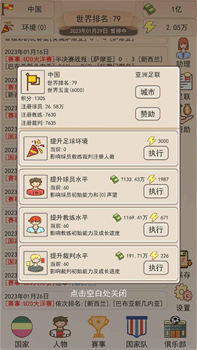 足协模拟器破解版无限体力金币是一款纯文字放置类足球经营手游,在这里你将扮演中国足协的主席在这个纯文字的世界里发挥出你的聪明才智,从而更好的帮助国家队能进入世界杯,游戏中需要玩家利用自己的理解来提升中国足球联赛的整体竞争力,包括提高足球氛围、培训裁判员等行为,真正的为中国足球所考量,最终将中国队培养成世界强队,玩家的主要任务就是根据自己的想法进行球员招募、训练、培养、提升、比赛等等,这样一来就能够使得自己的队伍逐渐打出名声,能够赚得盆满钵满,此外该游戏不仅仅只提供比赛玩法内容而且更是加入了一系列妙趣横生的游戏剧情,为玩家增加不少乐趣。