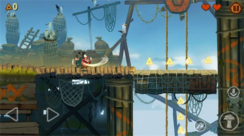 游戏中充满了富有想象力的视觉设计和创意挑战,采用双指操作,玩法十分简单:左手拇指滑动以行走、攀爬,右手拇指向上轻扫以跳跃,点按来进攻,向下轻扫来盾击。物理引擎打磨之出色,反应之精准流畅,使游戏具备精妙的手感。
