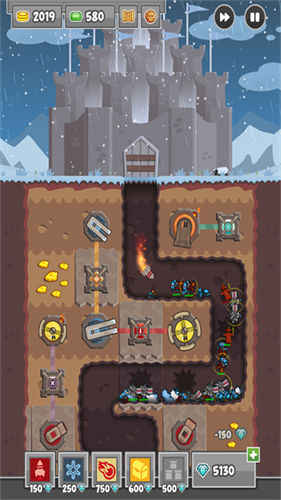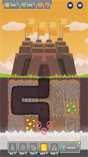 1、操控挖掘工具开采地下宝藏,搜集资源升级各类防御塔。