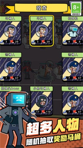 5、策略布阵:根据敌人动向与弱点,合理安排马桶人上阵,发挥最大战力。