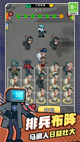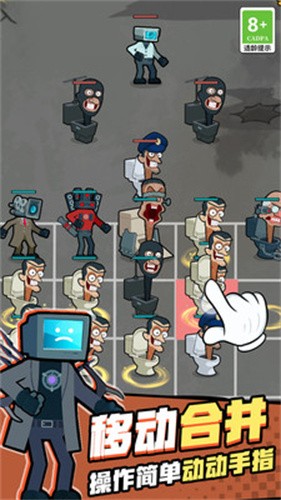 3.巧妙的合并:玩家需要巧妙地合并厕所男怪物,以创造更强大的战斗单位来迎击日益强大的敌人。