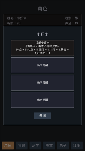 3、始玩家是一个江湖小虾米,你需要不断的修炼,踏入江湖,挑战各种豪强,最终在江湖留下你的名字。