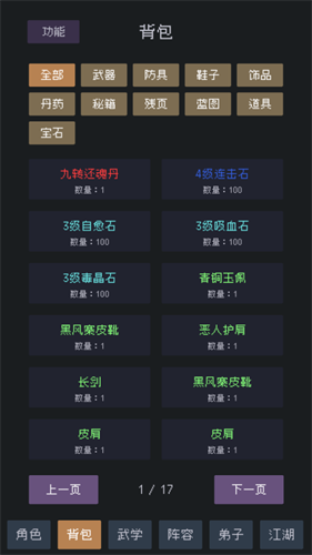4、喜欢文字武侠的玩家们可千万不要错过,游戏内的装备武器非常丰富,给玩家带来最逼真的武侠体验。