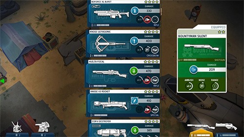 选择装配是战术的关键部分。除了护身服和手榴弹,你还可以带一个双手武器和一个单手武器 — 每个人都能选到合适的武器。散弹枪、手枪、突击步枪、狙击步枪、十字弓、能量武器、飞斧等。