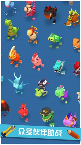 多样角色:骷骨龙、涡轮龟、金刚、老剑龙等多种史前萌物与玩家同行,每个角色都有独特的外观设计和技能设定。