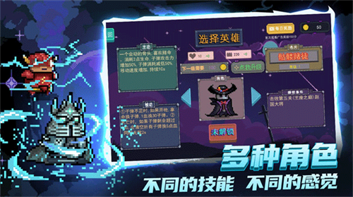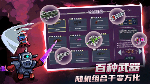 2、创意像素风格冒险,地图、武器、敌人全部随机生成,每一次冒险都充满未知。