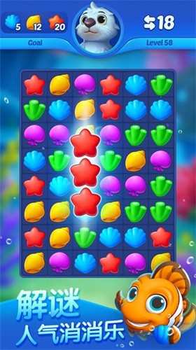 1、消除中能解锁各种小鱼伙伴,提升游戏闯关的趣味性。