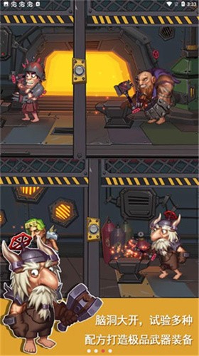 1、玩家将会在游戏中感受到有趣的道具合成游戏,去研发更加强大的武器出来;