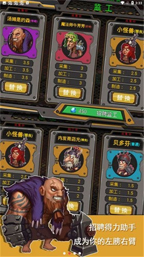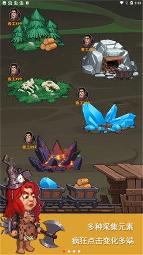 4、收集资源在大陆中寻找矿石,融合加工就能成为,闪耀的钻石;玩家完成任务即可获得金币,用来购买超多的武器装备,不断的加强族人的战斗力。