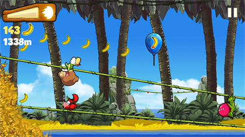3、尽可能多地收集香蕉来补充你的能量条,用能量条来摧毁障碍。