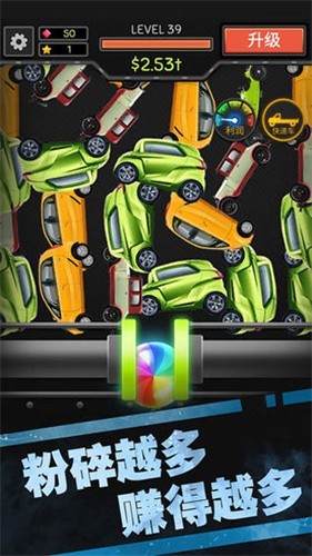 2、在这里,粉碎的汽车数量越多,赚取的金币也就会越多,整个过程很有操作性,需要合理规划粉碎顺序来提高效率。