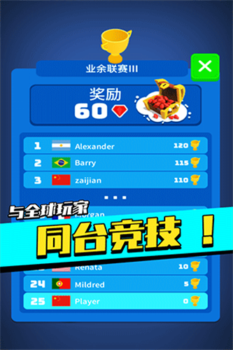 3、在这里,您可以与来自世界各地的球员进行足球比赛。