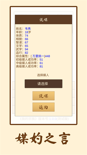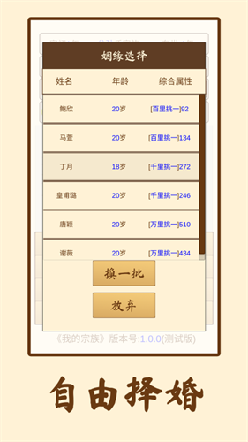 4、媒妁之言,玩家可以随心为家族的子孙去牵引红线,游戏体验丰富。
