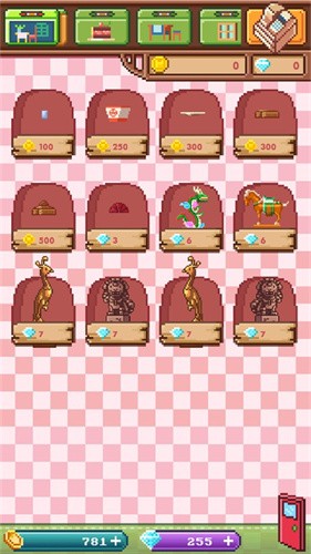 2、开设各类商店如餐饮店、花店、服装店等,每店需安排三名动物员工负责进货与销售以赚取金币。