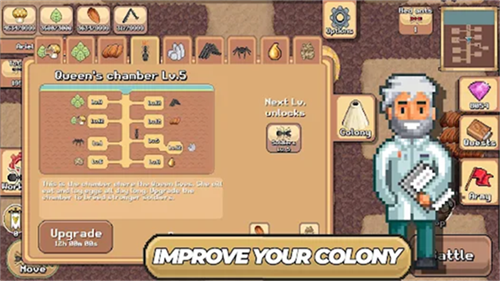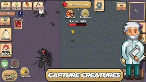 3、升级与进化:通过积累经验和资源就可以蚂蚁的等级和能力,使其战斗和资源获取更加高效。