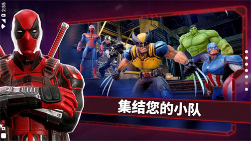 2、征募你的军队,创建由蜘蛛侠、美队、洛基、艾丽卡、奇异博士、毒液等强劲漫威英雄与超级反派组成的小队。