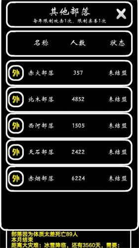 3.外交与战争:与其他部落进行外交互动,通过贸易、结盟或战争等方式获取资源,扩大部落的影响力。