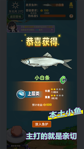 不需要长时间等待,核心玩法简洁流畅,1分钟即可学会,基本做到“竿竿有口”。