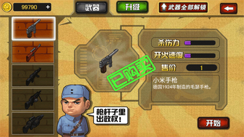 3、多种武器和技能,供你选择,合理的加强他们,可以帮助你消灭更多的鬼子。