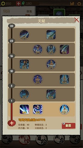 升级角色的天赋,就可以使之获得更加强大的实力,慢慢的获得成就。
