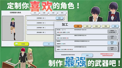 4、高自由度的自定义玩法,武器、道具、校园和角色等都能够自己进行设计。