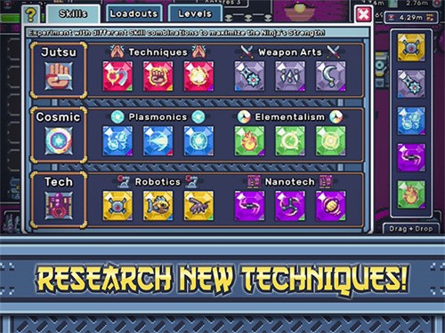 空闲忍者大师破解版内置菜单版是一款以忍者为背景,趣味十足的空间RPG动作冒险游戏,玩家将扮演一名忍者,在不同的星球上击败敌人、收集资源并体验剧情,游戏的画风以及特效非常独特,搭配上别具一格的音乐,让玩家非常有代入感,而且游戏操作比较简单,经典的横版动作玩法给玩家提供了不一样的游戏体验,轻击来提升你的技能,选择你的能力来生存幕府,点击攻击,收集资源,并利用你的能力在太空中闲逛,杀死为诡计多端的猎枪服务的残杀野人,并且更有流畅真实的打击感拳拳到肉,给你无与伦比的刺激竞技体验哦。