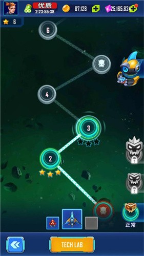 1、收集太空中的金币,解锁酷炫的战机装备和购买新的战机,从而来提升自己的战斗力;