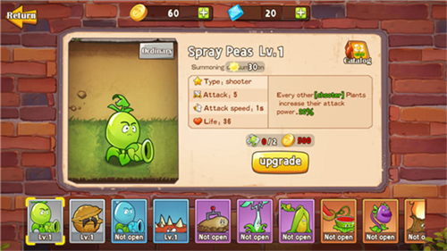 1、了解各植物的基础能力,依据关卡僵尸特点,选择合适植物进行培育。