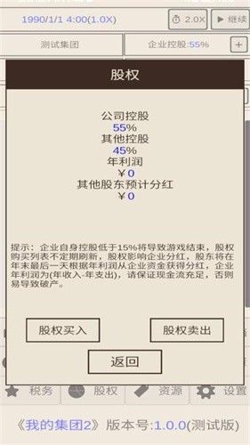 2、需要注意的是,玩家可以通过股份的比率来影响到公司的收益、