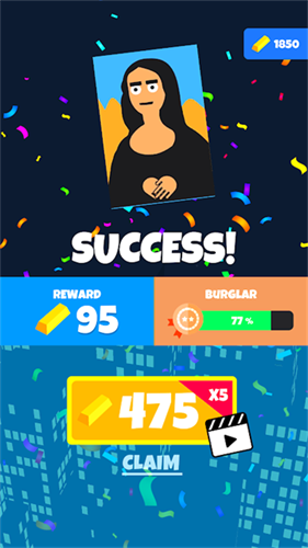 盗贼大师破解版内置菜单版是一款非常有趣的偷窃题材的小游戏,游戏采用了真实的3D引擎打造,可爱卡通的画风,在游戏中,你将成为一名偷盗大师,你的目标是在不同难度的场景中去偷取各种名画珠宝,但在过程中,有个各种机关陷阱等你来挑战,简单的操作上,您只需要滑动手机屏幕来操控游戏角色去盗取世界名画,在规定时间内完成任务,不仅仅是技术的挑战,也是对思维敏捷度的检验,每个关卡都有不同的难度设计,随着进展,你将面对越来越复杂的局面,并且游戏画面简洁但是却采用了绚丽的色彩,带来了丰富的视觉冲击,拥有可爱且不失乐趣的玩法,对此感兴趣的伙伴快来下载体验吧。