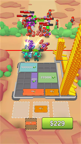 2、将箱子与武器合并,增强你的基地塔炮部队,发射威力更大的子弹。